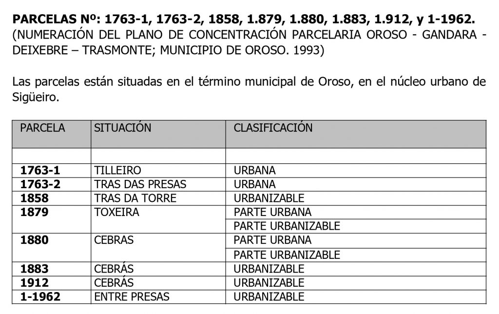 SITUACIÓN PARCELAS URBANAS / URBANIZABLES EN VENTA SIGÜEIRO